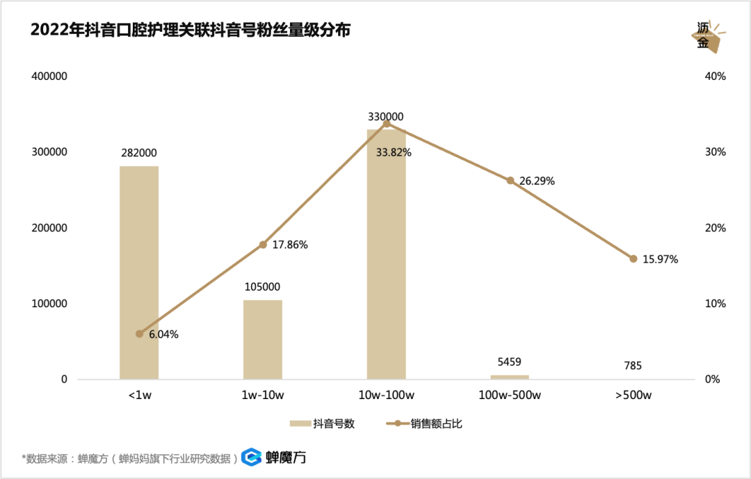 2022年抖音口腔護(hù)理關(guān)聯(lián)抖音號粉絲量級分布