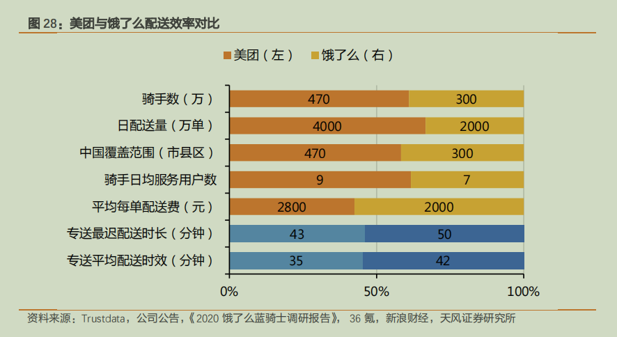 圖:美團、餓了么配送效率對比,來源:天風(fēng)證券