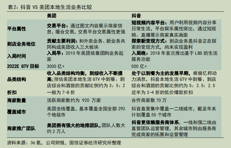 圖:美團、抖音本地生活業(yè)務(wù)比較,來源:國信證券