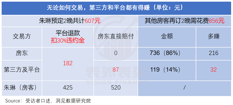 據(jù)朱琳描述,自己訂2晚民宿總共支付607元,實(shí)際到民宿老板手上的只有520元,第三方運(yùn)營公司和平臺抽走了房費(fèi)的14%。