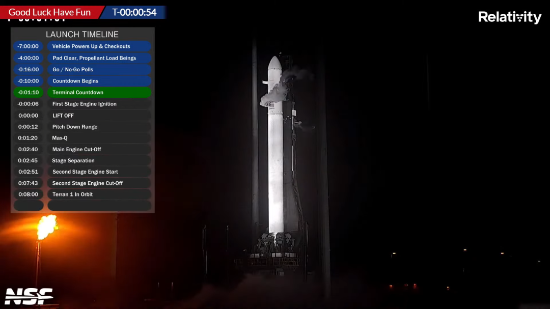 3月22日,由Relativity Space公司研發(fā)制造的人族一號(hào)(Terran 1)火箭在美國(guó)佛羅里達(dá)州卡納維拉爾角太空部隊(duì)的16號(hào)發(fā)射場(chǎng)升空。繼3月8日和11日兩次因技術(shù)問題取消發(fā)射后,此次發(fā)射尤為扣人心弦。