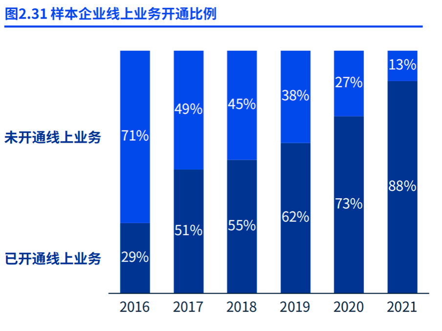 但大勢(shì)所趨,不觸網(wǎng)對(duì)便利店來(lái)說(shuō)可能更快被淘汰?!秷?bào)告》顯示,2016年只有29%的便利店開(kāi)通線上業(yè)務(wù),到2021年,這一數(shù)字已經(jīng)驟升至88%。線上業(yè)務(wù)銷售額占比大約在7%。