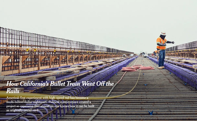 《紐約時(shí)報(bào)》題為《加州的高鐵列車如何一步步脫軌》的報(bào)道