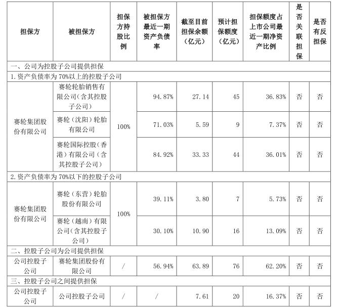 不僅如此,因龐大的項目建設(shè)而產(chǎn)生的資金需求,使得賽輪輪胎對外擔(dān)保額度大幅增加。