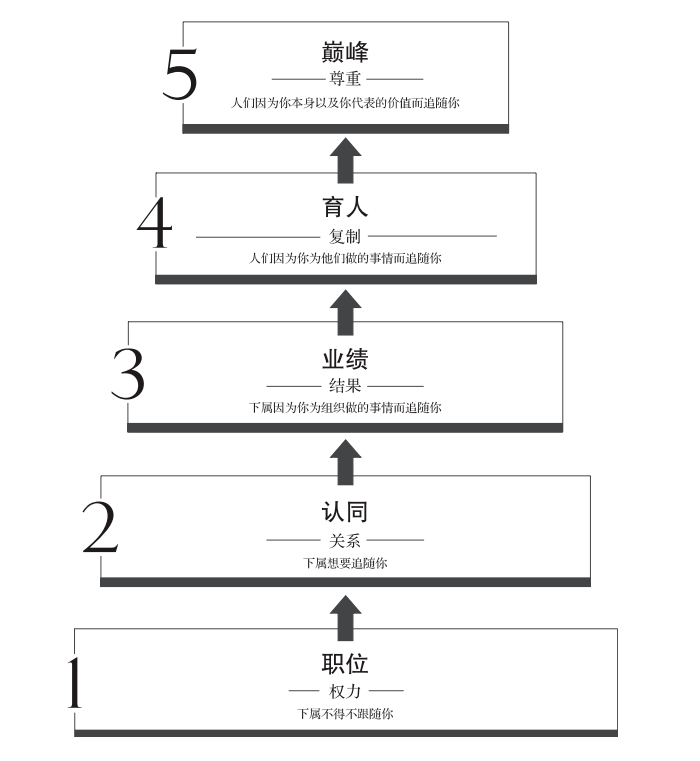 領(lǐng)導(dǎo)者來來往往,但不應(yīng)該只有一張面孔,領(lǐng)導(dǎo)力因稀缺才獨(dú)特。領(lǐng)導(dǎo)力大師約翰·麥克斯韋爾在《領(lǐng)導(dǎo)力的5個(gè)層級》這本書里,為我們揭示了如何塑造個(gè)人領(lǐng)導(dǎo)力的五個(gè)階段——職位、認(rèn)同、業(yè)績、育人、巔峰,以及不同階段所對應(yīng)的能力要求與解決方案。管理者需要不斷修煉自己的領(lǐng)導(dǎo)力,通過升級領(lǐng)導(dǎo)力密碼來幫助你帶領(lǐng)團(tuán)隊(duì),更好地驅(qū)動團(tuán)隊(duì)拿到結(jié)果。