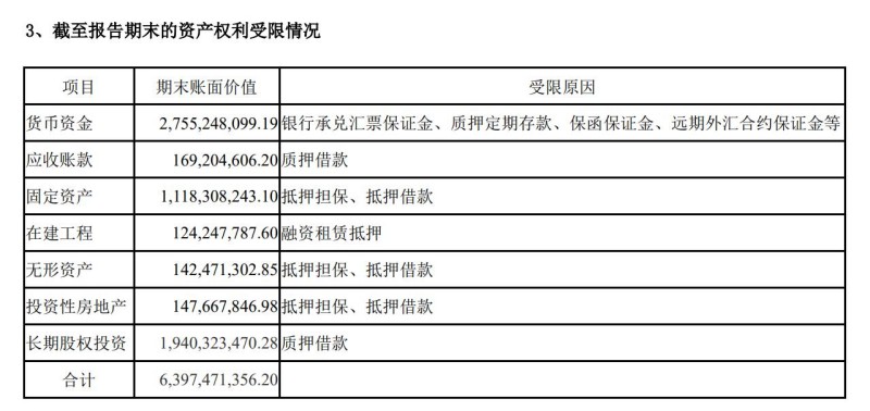 此外,包括貨幣資金在內(nèi),由于質(zhì)押借款、抵押擔(dān)保、抵押借款等各種原因形成的資產(chǎn)權(quán)利受限的金額合計達(dá)63.97億元,占愛康科技2022年末總資產(chǎn)115.61億元的55.33%,超過半數(shù)。