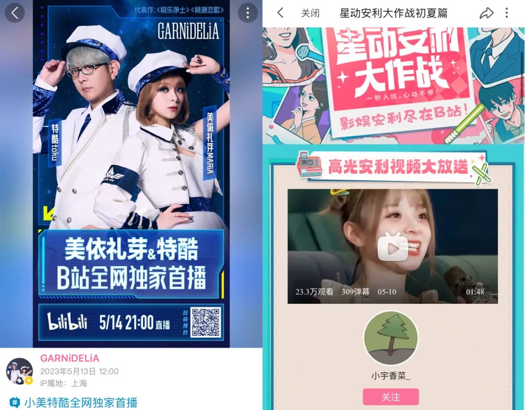 5月13日,B站官方圍繞小美主動(dòng)企劃了兩項(xiàng)活動(dòng):一是官宣了5月14日美依禮芽&特酷B站直播活動(dòng),這意味著B站領(lǐng)先其它平臺(tái)搶到了“全網(wǎng)首播權(quán)”。
