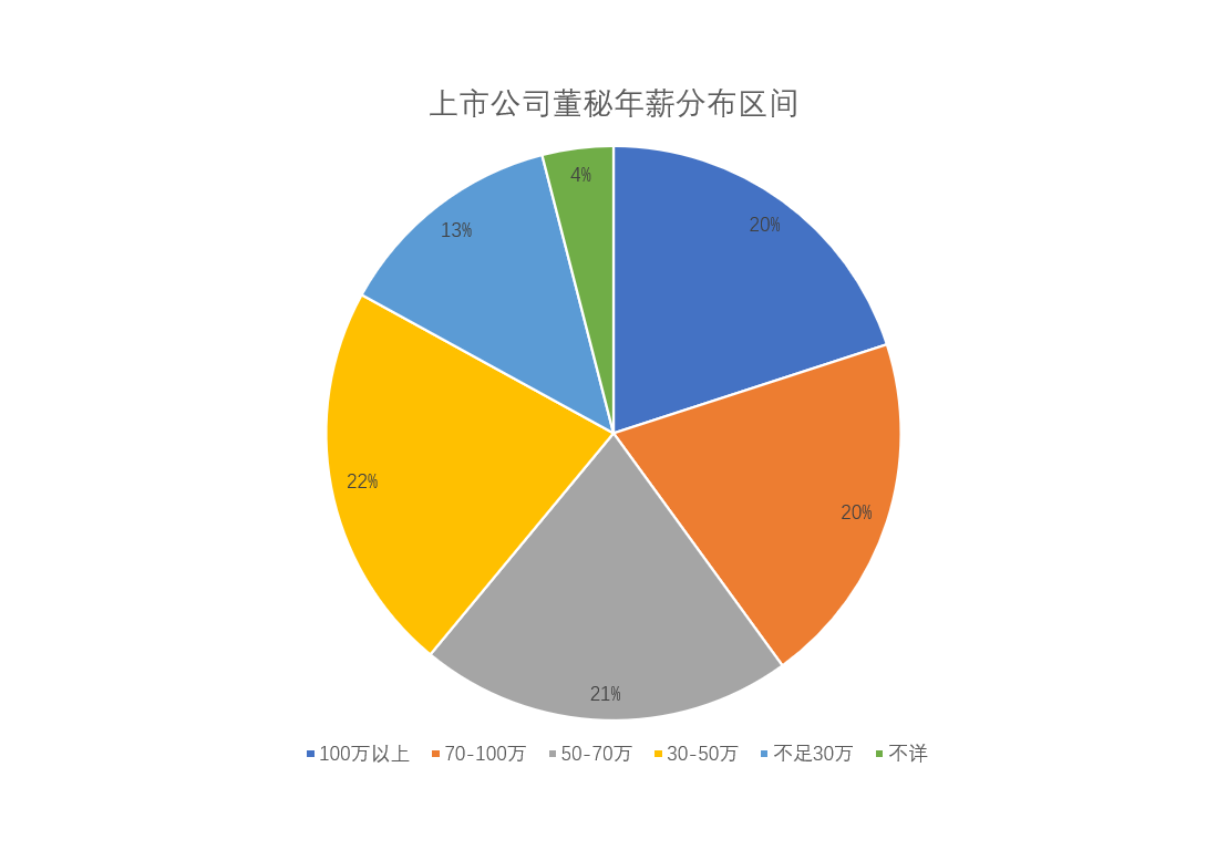 進(jìn)一步聚焦,2022年董秘年薪中位數(shù)為60.7萬元,與平均值存在一定的差距。分區(qū)間來看,薪酬超過100萬元的董秘共1017位,占比約為20%。年薪在70-100萬元區(qū)間的董秘為1024位,占比同樣約為20%。此外,有1097位董秘的年薪在50-70萬元區(qū)間,占比為21%。薪酬在30-50萬元區(qū)間的董秘有1153位,占比為22%;此外,仍有668位董秘的薪酬不足30萬元,占比13%。