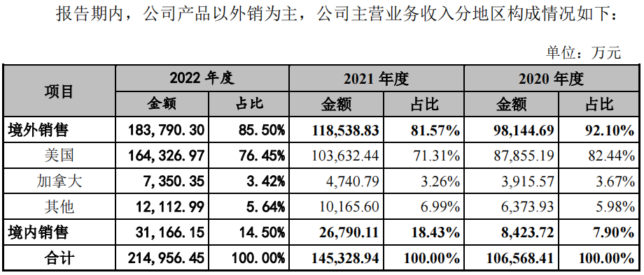 但富嶺科技的產(chǎn)品主要銷(xiāo)往海外,以美國(guó)為主。富嶺科技的外銷(xiāo)客戶主要為大中型餐飲和食品包裝產(chǎn)品分銷(xiāo)商、大型連鎖餐飲企業(yè)指定代采購(gòu)商、大型包裝產(chǎn)品制造商等。這些客戶的終端客戶又包括麥當(dāng)勞、漢堡王、溫迪、Restaurant Depot等。2020年-2022年,境外收入占比分別為92.1%、81.57%和85.5%。