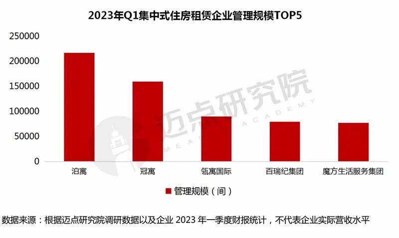 據(jù)邁點研究院統(tǒng)計,截至2023年一季度,萬科泊寓的運營管理數(shù)量在集中式住房租賃企業(yè)中規(guī)模排名第一,緊隨其后的為冠寓、瓴寓國際、百瑞紀集團以及魔方生活服務集團。截至3月底,租賃住宅業(yè)務共管理21.7萬間長租公寓,同比增長3.33%;累計開業(yè)17.05萬間,同比增長5.25%,出租率95%。一季度,泊寓在北京、天津、廣州、佛山、廈門等城市新增開業(yè)3900間。