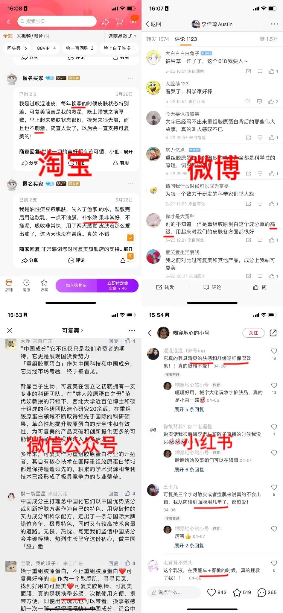 截圖自淘寶、微博、微信公眾號(hào)、小紅書
