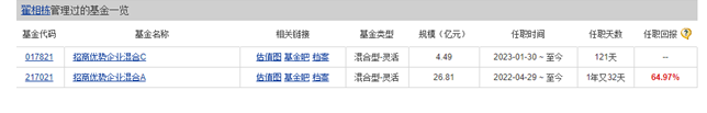 再如,基金經(jīng)理翟相棟,累計任職時間1年又32天,在管規(guī)模31.29億,在管2只產(chǎn)品中,有1只是2023年1月30日剛成立的,份額僅1.2億份。