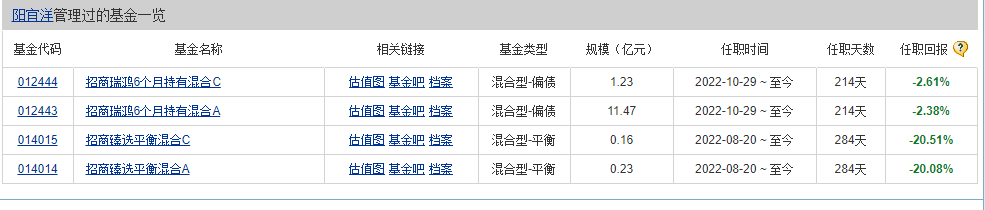 再如,基金經(jīng)理陽宜洋,任職時間284天,在管規(guī)模13.09億,旗下4只產(chǎn)品A/C,2只是2021年12月成立,2只是2022年1月成立,