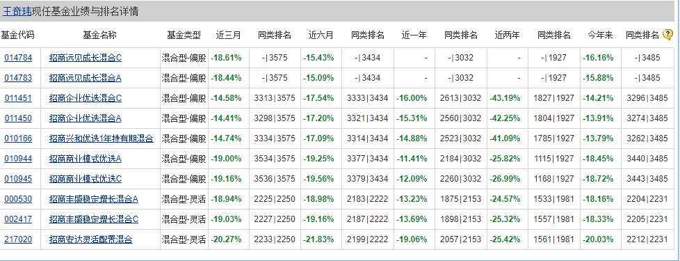 據(jù)公司研究室不完全統(tǒng)計,除了上述3位基金經(jīng)理外,招商基金公司70位基金經(jīng)理中,在管產(chǎn)品業(yè)績?nèi)?fù)或僅1-2只產(chǎn)品微紅的還有13人。