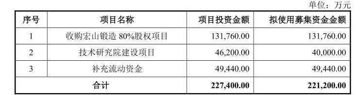 為完成此次收購(gòu),中航重機(jī)為此拋出了一份高達(dá)22.12億元的定增方案:擬向不超35名特定對(duì)象發(fā)行不超9371.99萬(wàn)股公司股份,不超過(guò)總股本的6.37%,用于收購(gòu)宏山鍛造80%股權(quán)項(xiàng)目、技術(shù)研究院建設(shè)項(xiàng)目及補(bǔ)充流動(dòng)資金。