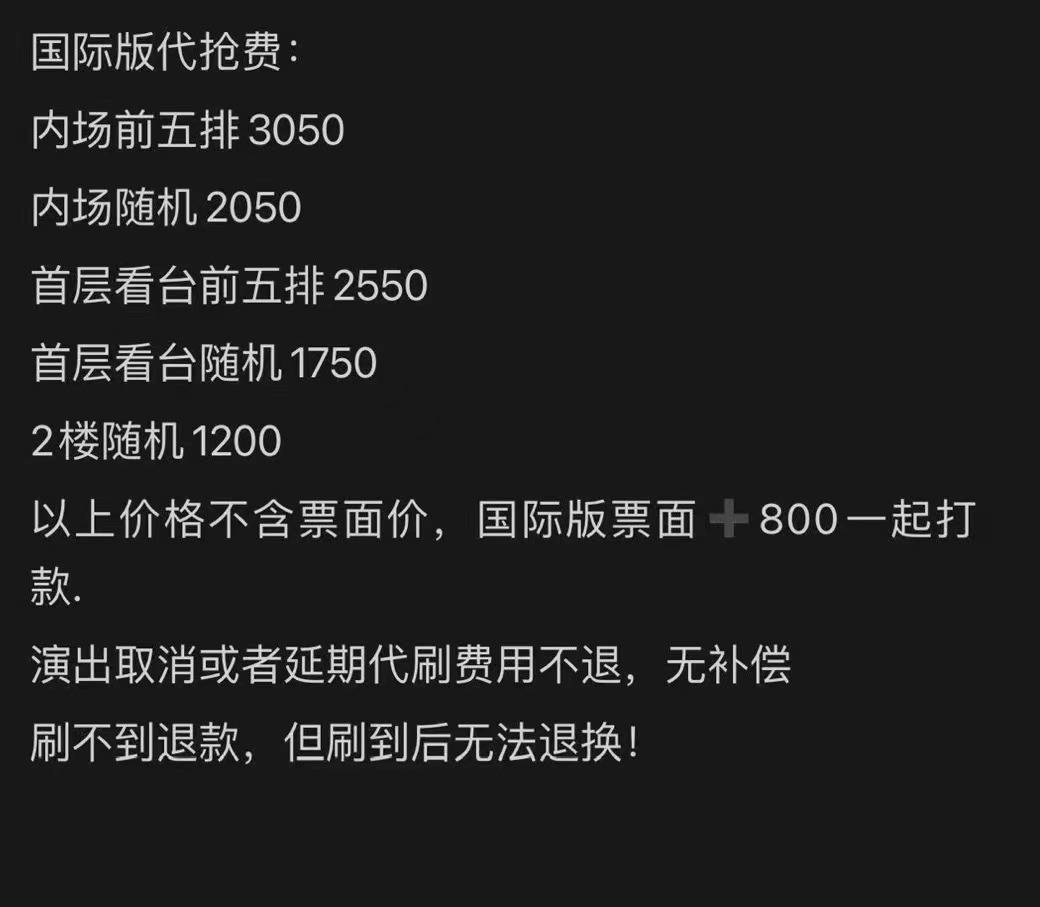 5月24日,韓國男團(tuán)seventeen官宣首爾演唱會后,粉絲朝朝就在朋友圈看見了黃牛和代拍們給出的價格參考。據(jù)了解,該場演唱會普通票價格折合人民幣約820元,VIP票約1054元,而票務(wù)給出內(nèi)場前五排的代搶費(fèi)最高超過3000元,二層看臺的也達(dá)到了千元。但朝朝仍然快速地在搶票平臺interpark注冊了賬號,并和代購約定了搶票事宜。
