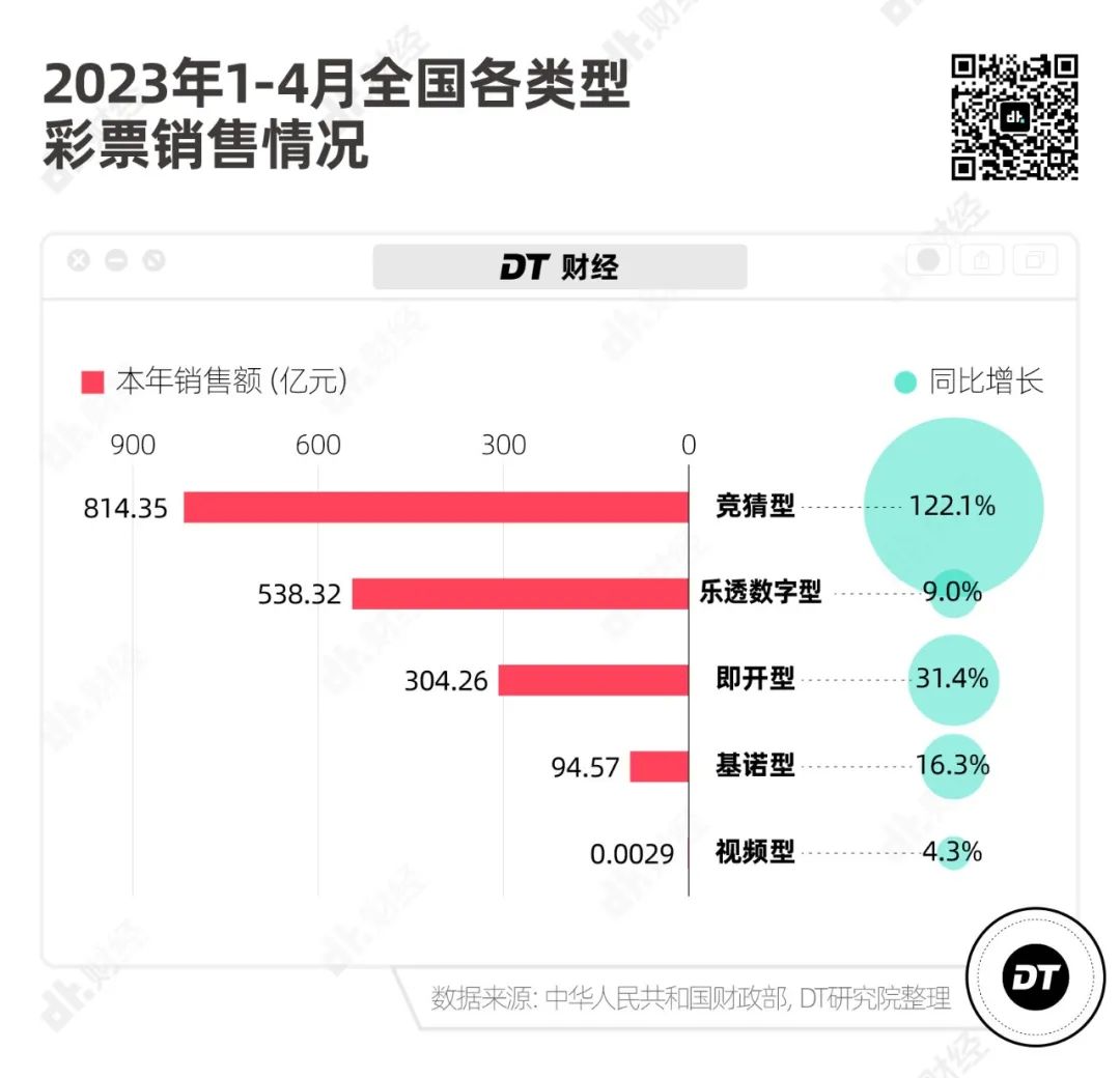 上個(gè)月,財(cái)政部公布了2023年前4個(gè)月的彩票銷售數(shù)據(jù),銷售額逐月上漲,4月單月銷售額已經(jīng)到達(dá)到了503.26億元,同比增長(zhǎng)62.0%。