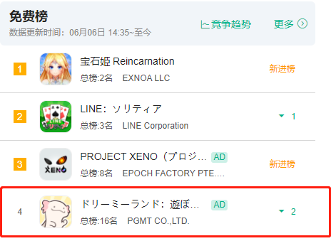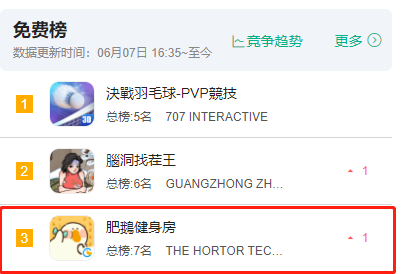 除了日韓地區(qū),臺灣地區(qū)市場也具有模擬經(jīng)營品類的基因。去年的休閑爆款《肥鵝健身房》在近日加入競爭,6月1日上線后今日在免費(fèi)榜第三名,暢銷榜28。此外,三七互娛去年則上線了一款《營業(yè)中!舊時光商店街》,今日暢銷榜排名31,此外點點互動的《菲菲大冒險》《冰封時代》今日分別在暢銷榜排23名與26名。