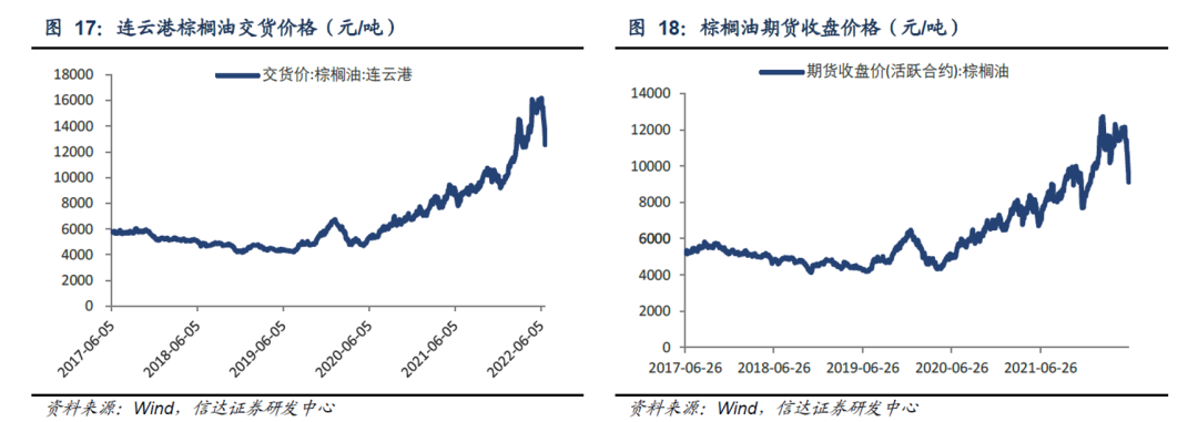 信達(dá)證券數(shù)據(jù)顯示,印度尼西亞與馬來西亞是全球最主要的兩大棕櫚油出口國,兩國合計棕櫚油出口總額可占全球近90%。但由于新冠疫情的擾動,以及不利天氣的影響,兩國的棕櫚油產(chǎn)量不及預(yù)期,印尼限制棕櫚油出口,而中國又是棕櫚油消費大國,供需失衡下帶來了較長一段時間的棕櫚油價格上漲。