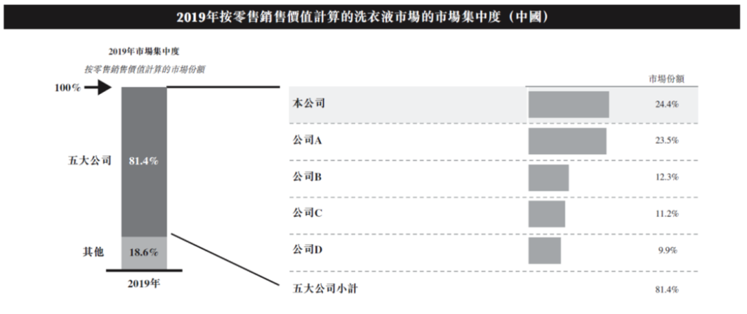 但隨著越來越多的洗護(hù)品牌加入到洗衣液這一市場中,國內(nèi)的洗衣液市場滲透率也在逐漸提高,市場規(guī)模增速則在逐漸降低。弗若斯特沙利文數(shù)據(jù)顯示,截至2019年,國內(nèi)的洗衣液市場滲透率已經(jīng)達(dá)到44%,雖然與日本79.5%、美國91.4%的市場滲透率相比仍然有不小的差距,但中國的人均消費水平與發(fā)達(dá)國家相比依然有距離,此時國內(nèi)的洗衣液競爭市場也變得更激烈。
