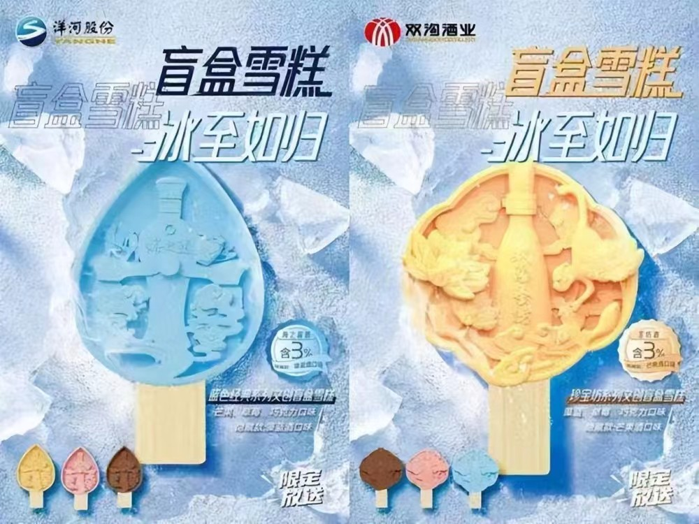 早在2019年,瀘州老窖就跨界合作鐘薛高推出含52度白酒的“斷片雪糕”;2020年,江小白與蒙?!半S變”合作推出白桃和焦糖兩種口味酒心巧克力冰淇淋;去年,除了茅臺(tái)冰淇淋爆火之外,洋河酒業(yè)也推出了文創(chuàng)產(chǎn)品盲盒雪糕,將雪糕、白酒、文創(chuàng)三者結(jié)合;今年3月,貴州珍酒冰淇淋巴士在長(zhǎng)沙市進(jìn)行宣傳活動(dòng)……