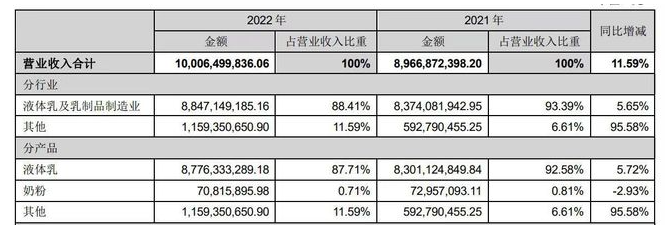 2022年財報顯示,新乳業(yè)目前的主營業(yè)務(wù)分為液體乳、奶粉及其他業(yè)務(wù)。
