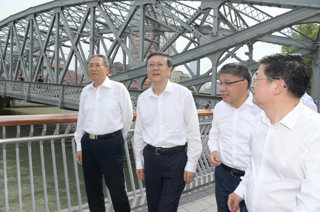 蘇河灣綠地作為蘇州河?xùn)|段最大規(guī)模的濱水綠地,通過整體實(shí)施城市更新及濱水空間全要素整治,致力打造高能級(jí)、地標(biāo)性的公共活動(dòng)空間。自今年3月建成開放以來,市民游客紛至沓來、游玩打卡。陳吉寧一行一路察看綠地布局和濱水空間,了解區(qū)域架空線入地和桿箱整治工程、無障礙環(huán)境提升工程等推進(jìn)情況,走進(jìn)“靜鄰一家”了解便民服務(wù)供給和服務(wù)驛站設(shè)置,就進(jìn)一步推進(jìn)“一江一河”兩岸空間品質(zhì)提升工程同相關(guān)區(qū)和部門負(fù)責(zé)同志深入交流討論。陳吉寧說,“一江一河”公共空間貫通開放后深受市民游客歡迎。要再接再厲,結(jié)合區(qū)域?qū)嶋H,著眼空間提升、品質(zhì)提升、功能提升,將海綿城市、綠色低碳等先進(jìn)理念充分融入項(xiàng)目建設(shè)運(yùn)行之中,持續(xù)打造“一江一河”新亮點(diǎn)、宜樂宜游新空間、人民城市新地標(biāo),把最好的資源留給人民、用優(yōu)質(zhì)的供給服務(wù)人民。