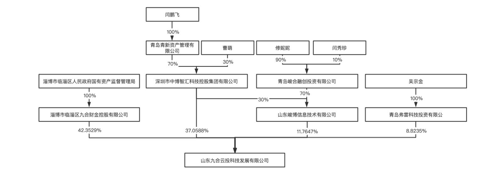 基于上述協(xié)議,中博集團(tuán)控制九合云投57.65%表決權(quán),為山東九合云投控股股東。閆鵬飛通過(guò)控制中博集團(tuán)間接控制山東九合云投57.65%表決權(quán),系山東九合云投實(shí)際控制人。而作為山東九合云投另一大國(guó)資股東,淄博市臨淄區(qū)九合財(cái)金控股有限公司對(duì)該實(shí)控人認(rèn)定無(wú)異議。