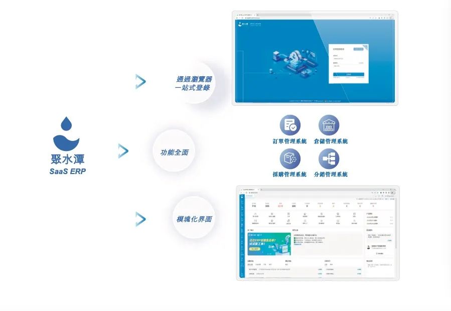 聚水潭亦從最早主要面向電商商家提供訂單、倉儲(chǔ)庫存、采購管理的ERP(Enterprise Resource Planning,企業(yè)資源計(jì)劃)解決方案,后期成長為覆蓋跨境、財(cái)務(wù)、工作流、采購的一站式電商SaaS平臺(tái)。
