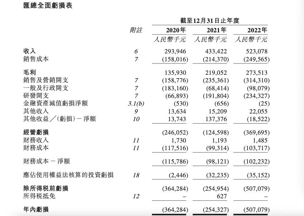 2020年至2022年,聚水潭分別錄得凈虧損3.643億元、2.543億元及5.071億元,經(jīng)調(diào)整凈虧損分別為1.072億元、1.370億元及3.794億元。截至2020年12月31日、2021年12月31日及2022年12月31日,聚水潭分別錄得累計(jì)虧損8.295億元、10.807億元及15.860億元。