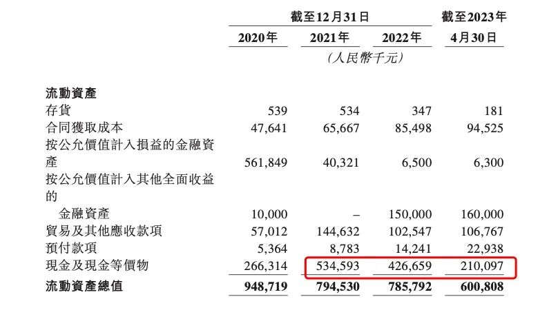 2020-2022年,聚水潭連續(xù)三年的經(jīng)營性現(xiàn)金流凈額分別為1.63億元、-2380萬元、7871萬元。2022年至2023年,聚水潭的賬面現(xiàn)金與現(xiàn)金流開始加速減少,相較2021年底的5.35億元,2022年底減少1.08億元至4.27億元,截至今年4月30日,賬面現(xiàn)金與現(xiàn)金等價(jià)物僅余2.1億元,相比2022年年底銳減2.17億元。