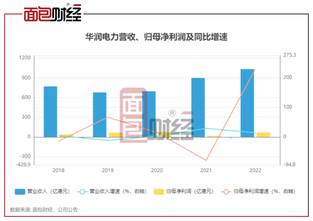 隨著火電業(yè)務虧損收窄,2022年,華潤電力業(yè)績大幅反彈,歸母凈利潤同比增長229.4%至70.42億港元。