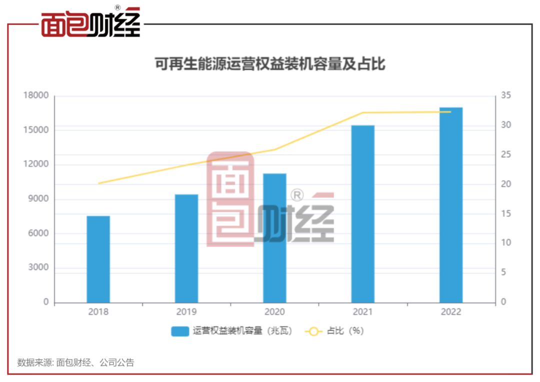 可再生能源業(yè)務:裝機占比32.3%,近兩年貢獻主要利潤來源
