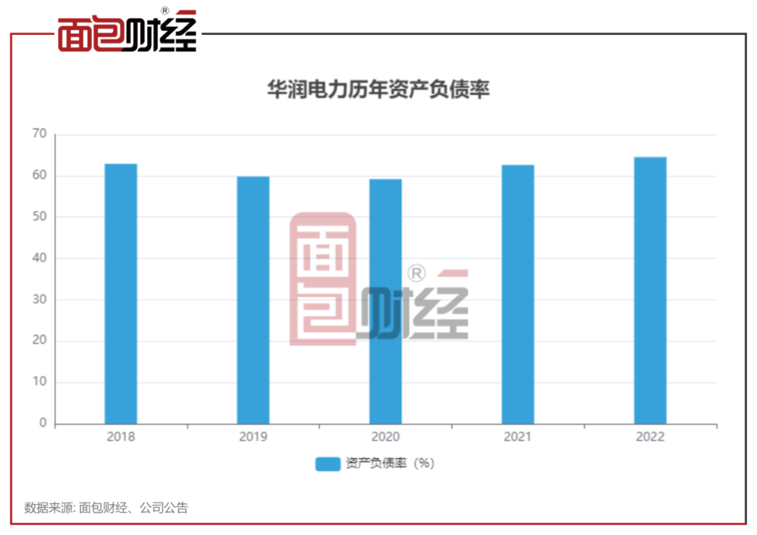 近年來,華潤電力的資產負債率上升較為明顯,由2020年的相對低點約59.19%上升至2022年約64.5%。
