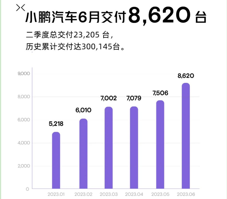 截至2023年6月31日,小鵬汽車年內(nèi)累計總交付量41435輛。僅比理想汽車6月份單月銷量高出8000多輛。而同期理想汽車共交付新車139117輛,蔚來則是54561臺。
