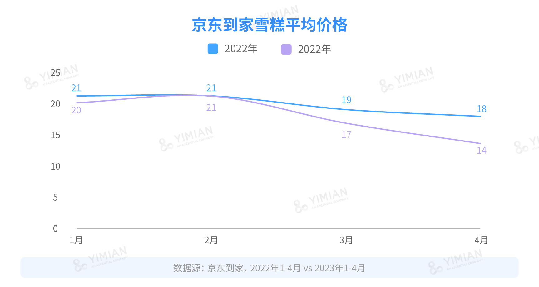 分月來看,天氣較冷的1月、2月為雪糕銷售淡季,兩年的價(jià)格都以維穩(wěn)為主;3月氣溫回升,雪糕行業(yè)逐漸“開柜”(指各大商超會(huì)將冰柜中的其他凍品撤掉一部分,為冷飲產(chǎn)品騰出空間),雪糕價(jià)格都比去年更低,4月雪糕均價(jià)從18元到14元,跌幅約22%。