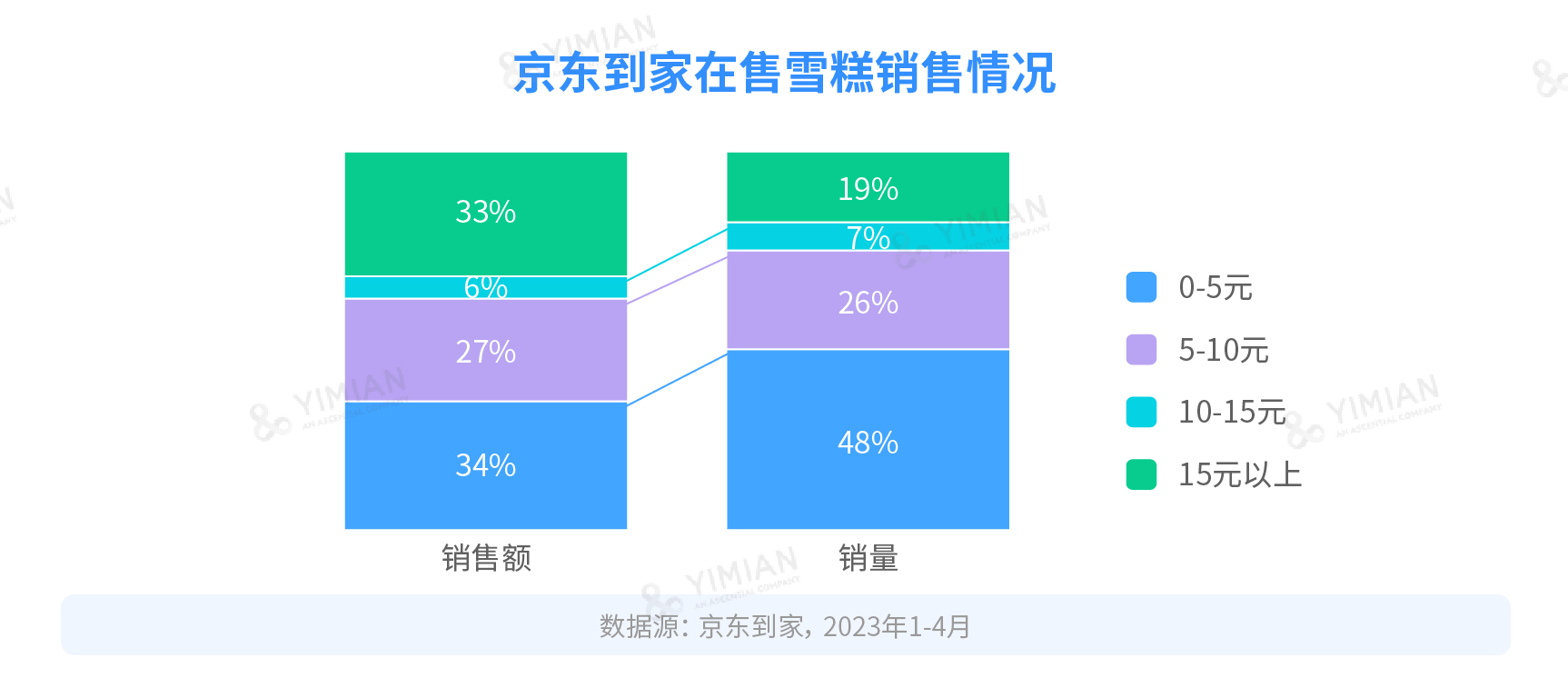 近年來即時(shí)零售發(fā)展迅速,O2O的高時(shí)效性和便捷性讓其成為了消費(fèi)者購買雪糕的重要渠道之一。因此,我們以京東到家為主要平臺(tái),研究雪糕在2023年1-4月及2022年同期的銷售情況。