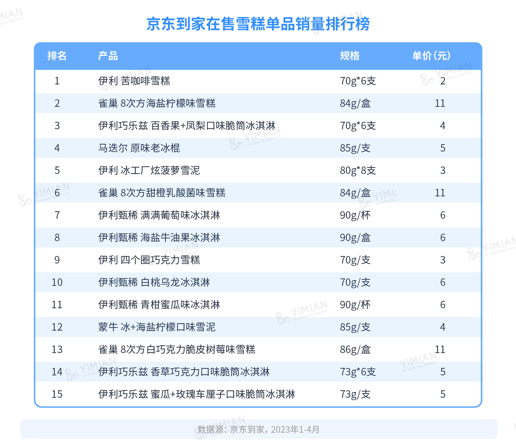 從消費(fèi)者最關(guān)注的價(jià)格來看,2022年1-4月京東到家雪糕平均價(jià)格為19元,2023年同期則為16元,下降約16%。