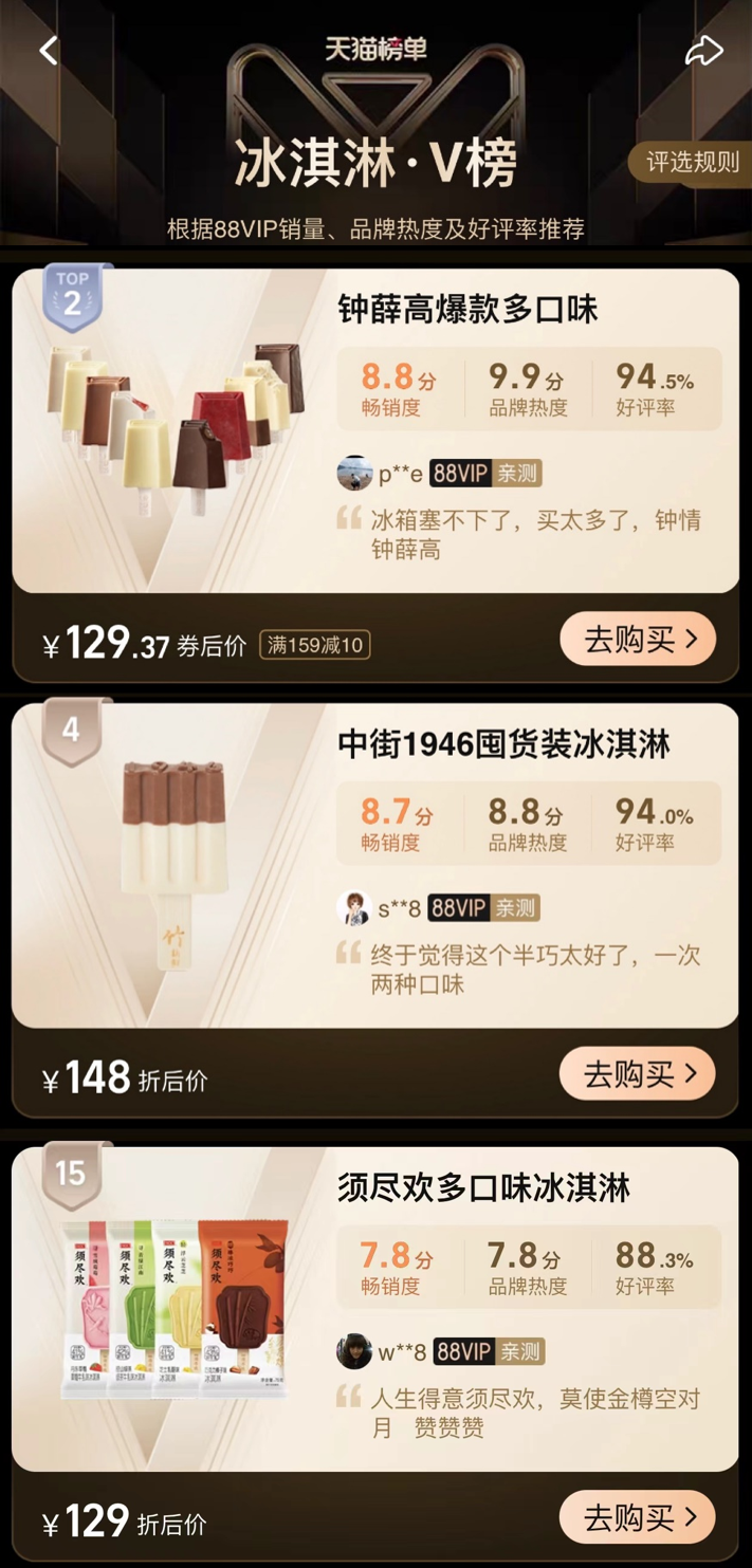 天貓冰淇淋各大榜單也不乏這些品牌的身影,網(wǎng)絡(luò)風(fēng)評(píng)如何另說,總之消費(fèi)者已經(jīng)用錢包投了票。