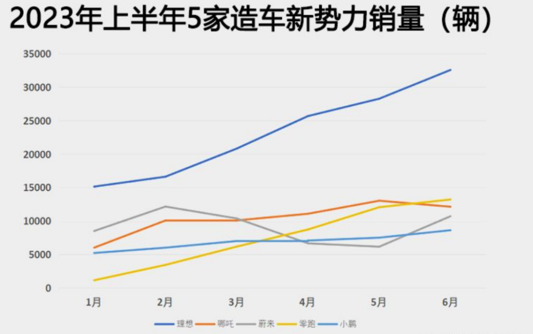 2023年上半年銷量遠(yuǎn)不及理想、蔚來,甚至被哪吒、零跑這些二線新勢(shì)力趕超。可曾想去年剛過半時(shí),小鵬還位居過新勢(shì)力交付冠軍的寶座。