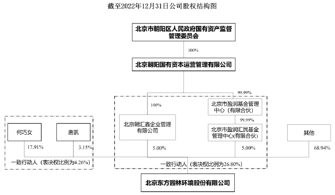 2018年,曾經(jīng)高歌猛進(jìn)的“園林第一股”東方園林,因發(fā)債失利,陷入危機(jī)。為求自救,彼時(shí)東方園林實(shí)控人何巧女夫婦將5%股權(quán)轉(zhuǎn)讓給北京市朝陽國資委旗下企業(yè)(盈潤匯民基金),并于2019年8月再次轉(zhuǎn)讓5%股權(quán),并向北京市朝陽國資委讓出了東方園林實(shí)控權(quán)。