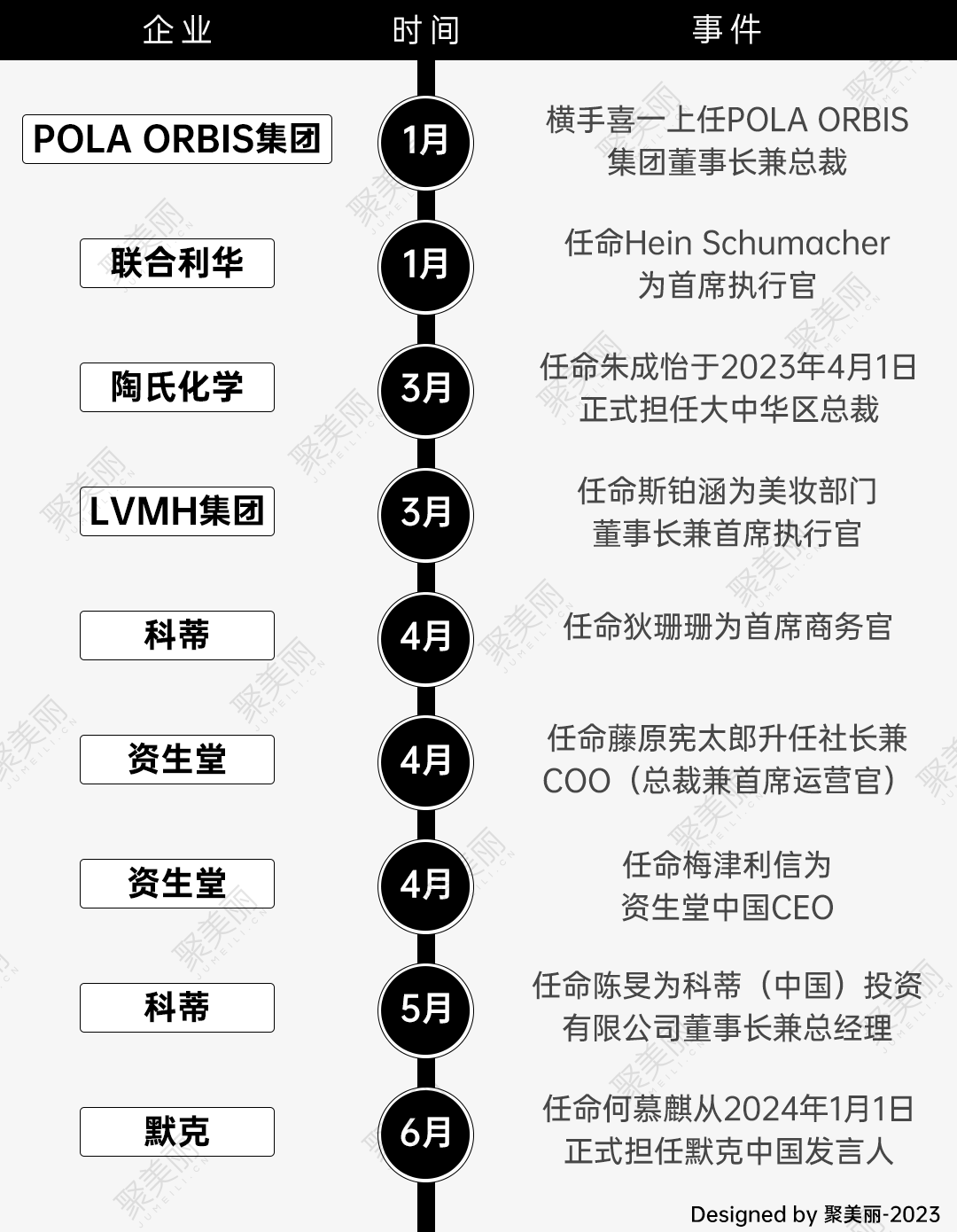 據(jù)聚美麗不完全統(tǒng)計(jì),今年上半年以來(lái),國(guó)際美妝企業(yè)的人事變動(dòng)多達(dá)三十起,其中,有九位高管的變動(dòng)與中國(guó)市場(chǎng)有著密切聯(lián)系,而且都屬于重大職位變動(dòng)。