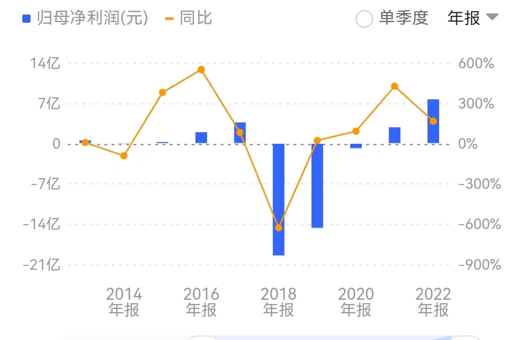 據(jù)界面新聞梳理,上市以來,聯(lián)創(chuàng)股份的經(jīng)營業(yè)績大致可分三個階段:2012-2017年公司業(yè)績逐年增長,其中2017年實現(xiàn)歸母凈利潤3.72億元。2018年,聯(lián)創(chuàng)股份因高溢價并購互聯(lián)網(wǎng)公司導(dǎo)致業(yè)績暴雷,凈利巨虧19.54億元,2019年繼續(xù)巨虧14.74億元。此后,聯(lián)創(chuàng)股份逐步回歸化工主業(yè),截至2022年末,受新能源鋰電材料產(chǎn)品市場行情的影響,公司實現(xiàn)凈利潤7.74億元,同比增加168.92%。