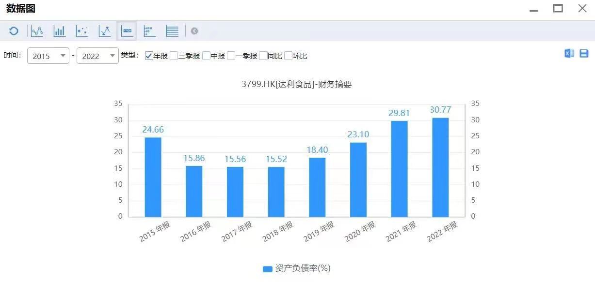 2022年,達(dá)利食品營業(yè)收入達(dá)199.57億元,同比減少10.48%;歸屬于母公司股東的凈利潤達(dá)29.90億元,同比減少19.73%。