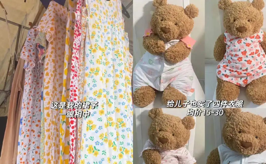 在200元掃貨“給自己選了兩條日系風(fēng)格的長裙,還給我的巴塞羅熊買了幾件小衣服”之后,00后的悅純也開始刻意留意那些開在農(nóng)貿(mào)市場里面的服裝檔口。