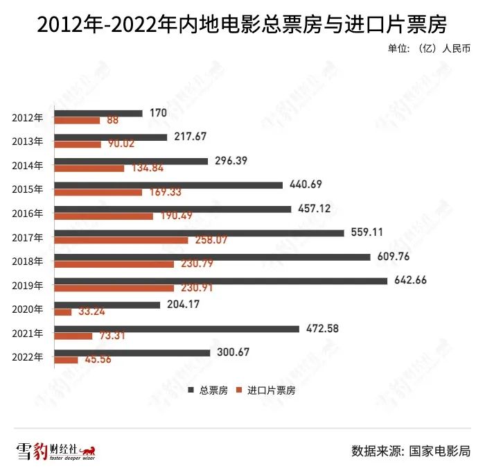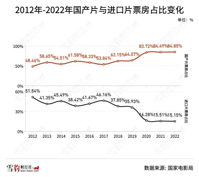1997年上映的《泰坦尼克號(hào)》,貢獻(xiàn)了該年度國內(nèi)市場(chǎng)總票房的三分之一。2012年,進(jìn)口片票房占比超過50%。一些口碑不佳的好萊塢電影,即使在本土市場(chǎng)失利,龐大的中國票倉也能為其兜底,拿下10億以上的票房并非難事。
