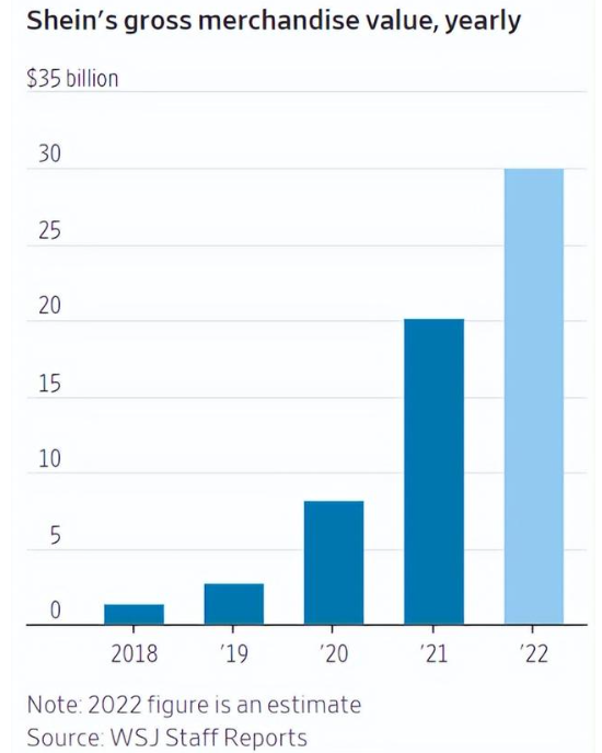2022年,SHEIN的營(yíng)業(yè)收入達(dá)到了227億美元,估值也一路上升到最高約1000億美金,不僅成為全球排名前3的獨(dú)角獸,還是歐洲快時(shí)尚巨頭Zara和H&M最主要的競(jìng)爭(zhēng)對(duì)手。