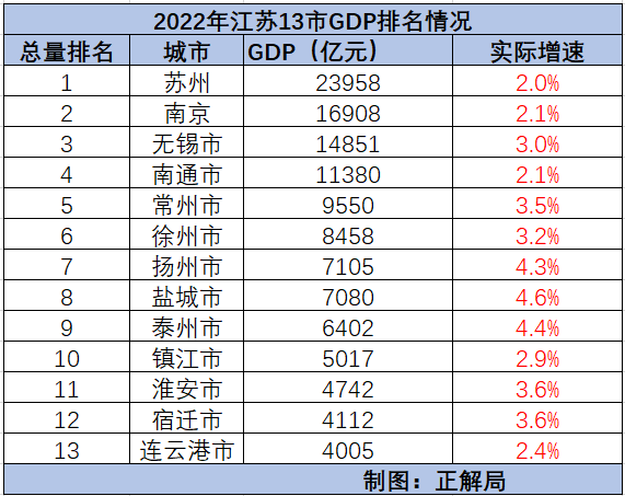 2022年江蘇各城市GDP排名
