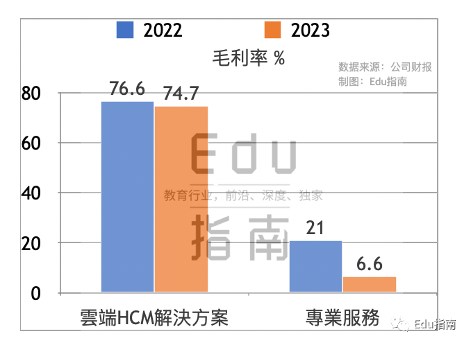 其中主要收入板塊云端HCM解決方案本財(cái)年毛利率為74.7%,低于上一財(cái)年同期的76.6%。