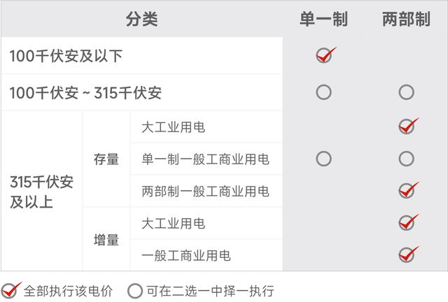 5月15日,國家發(fā)改委印發(fā)《關(guān)于第三監(jiān)管周期省級電網(wǎng)輸配電價及有關(guān)事項的通知》(以下簡稱《通知》),該通知已于2023年6月1日正式執(zhí)行。根據(jù)《通知》,執(zhí)行工商業(yè)(或大工業(yè)、一般工商業(yè))用電價格的用戶,用電容量在100千伏安及以下的,執(zhí)行單一制電價;100千伏安至315千伏安間的,可選擇執(zhí)行單一制或兩部制電價;315千伏安及以上的,執(zhí)行兩部制電價,現(xiàn)執(zhí)行單一制電價的用戶可選擇執(zhí)行單一制電價或兩部制電價。